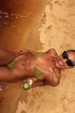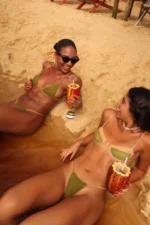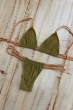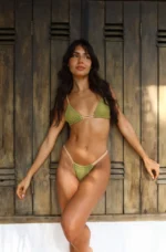 Biquíni Bella Pistache – Sutiã cortininha com casinha na alça, dando a opção de usar modelo camisetinha (ombro) ou amarrado no pescoço e calcinha cortininha. Malha Carmel com textura, nas cores pistache e areia, deixando o conjunto ainda mais lindo. A malha é super macia, com forro suplex (não entra areia), confortável e com proteção UV FPU 50+.