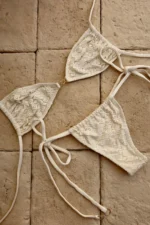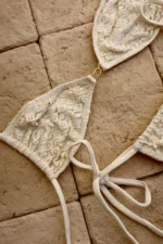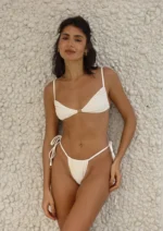 Biquíni Joá Vibe – Minimalista, e com aquele toque a mais que transforma o básico em desejo. O Joá é aquele biquíni básico curinga que valoriza o corpo com sofisticação e conforto. O sutiã tem um recorte que realça os seios de forma natural e detalhe de casinha nas alças, pra você escolher entre amarração clássica no pescoço ou estilo camisetinha nos ombros, no centro, um aviamento exclusivo banhado a ouro (não descasca!) traz charme essencial e toque perfeito ao biquíni. A calcinha é no estilo cortininha, com amarração lateral ajustável e ponteiras com argolas delicadas — detalhes pensados para valorizar a peça. Toque macio e forro que não deixa entrar areia.