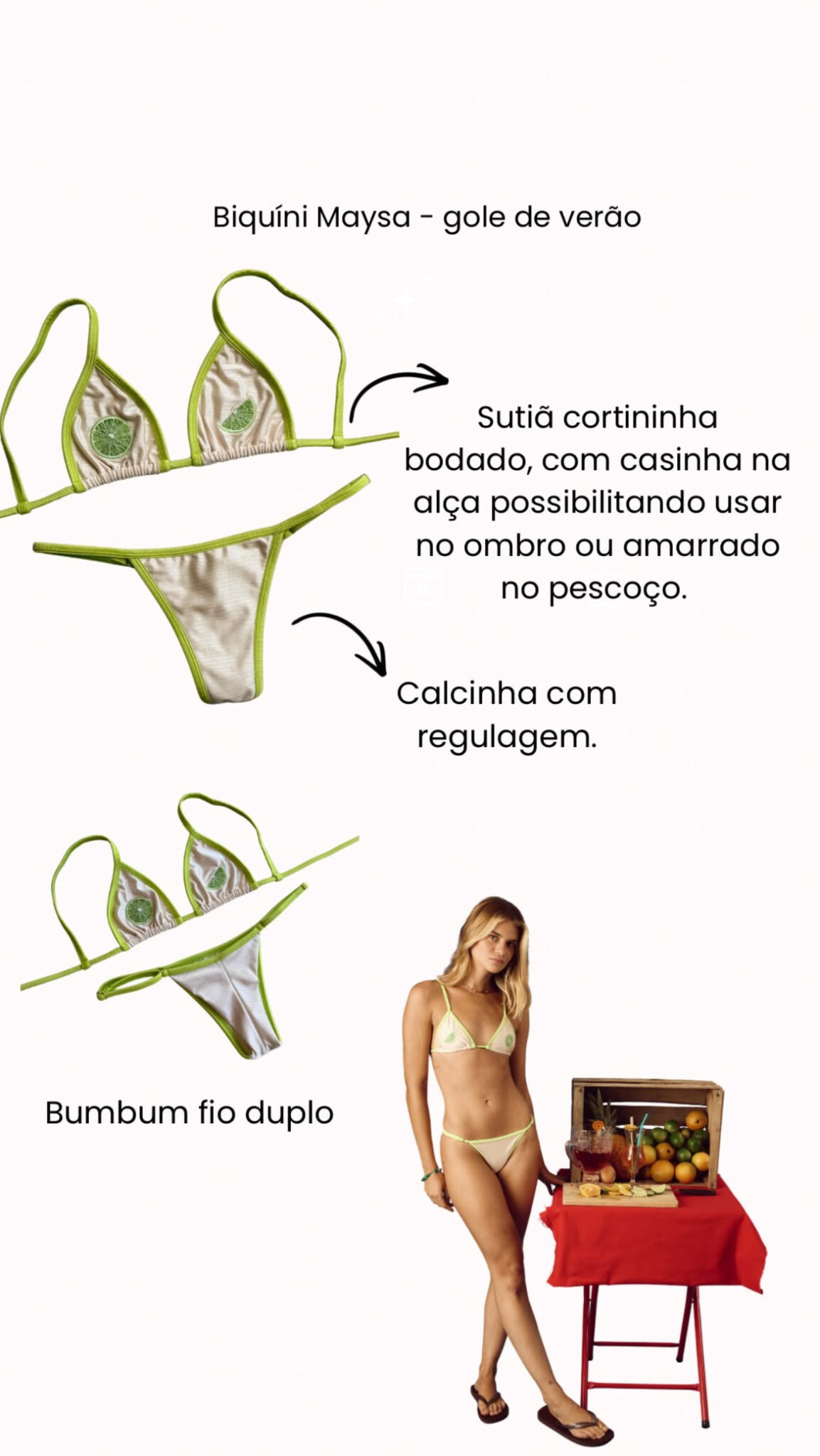 Um biquíni marcante, com ar sofisticado e ao mesmo tempo leve, perfeito para quem gosta de peças únicas, cheias de personalidade e que se destacam em qualquer cenário à beira-mar.