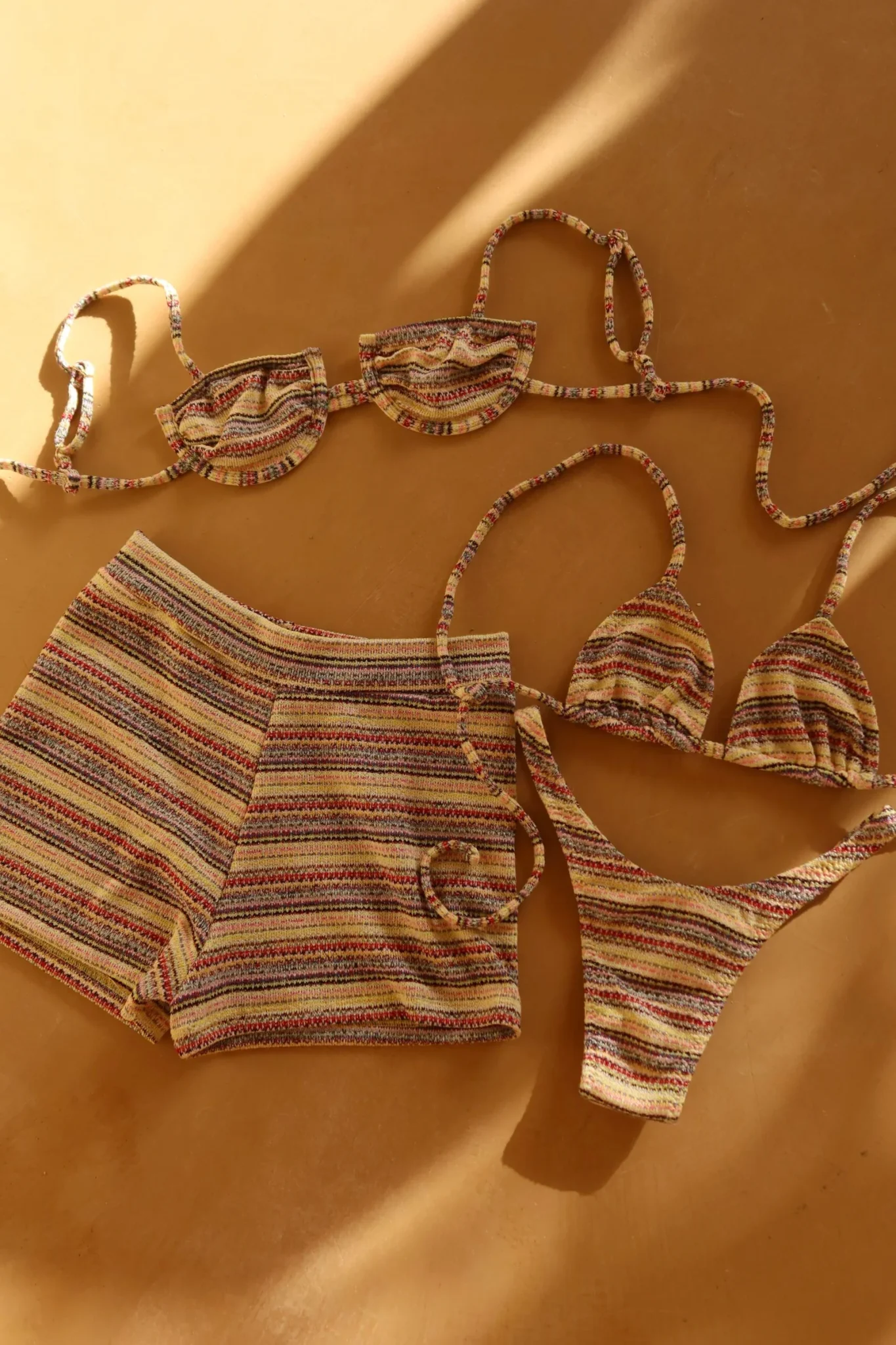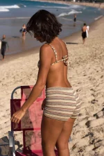 Tay Maquínetado Off White – Sutiã meia-taça com amarração nas costas, regulagem banhada a ouro na alça e calcinha fio dental asa-delta. Malha Maquínetada com textura, na cor off white com costura pespontada em zig-zag na cor caramelo, deixando o conjunto ainda mais lindo. A malha é super macia, confortável e forro suplex (não deixa a peça transparente) com proteção UV FPU 50+.
