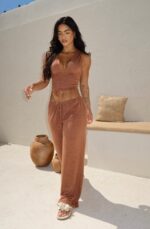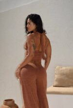 Calça Bárbara Cappuccino – Com modelagem solta, toque leve e caimento fluido a calça Barbara acompanha o movimento do corpo com liberdade. A cor Cappuccino traz vibe natural, discreta e versátil, que vai bem em qualquer estação. Fácil de usar, mas nada óbvia.  O tecido tem textura suave e aparência fresca, dando um equilíbrio perfeito entre o relax e o bem pensado. A modelagem ampla traduz conforto sem perder o estilo, ela é a mistura de conforto com estilo, sem abrir mão de um toque de presença. Modelo veste P.