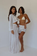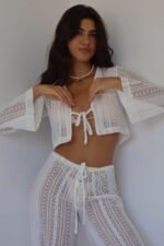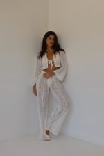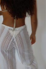 Calça pantalona, com amarração frontal e ponteira, feita em algodão, renda delicada. Perfeita para compor o look com visual praiano e chic.