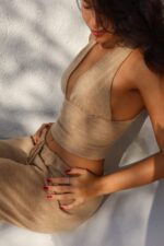 Cropped Bárbara Areia -Toque macio, caimento leve e uma textura que conversa com o verão de um jeito elegante, mas zero óbvio.