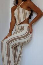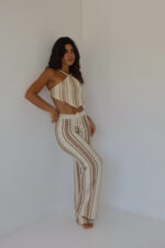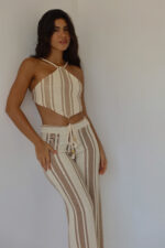 Cropped Brenda Luz de Maré – Moderno, fresh e cheio de personalidade. O cropped triangular em tricot listrado valoriza a silhueta com caimento leve e toque agradável. Possui amarração nas costas em cordão São Francisco, que além de garantir ajuste, adiciona um detalhe sofisticado e artesanal. Combine com a Calça Bella luz de maré para um conjunto marcante e cheio de personalidade.