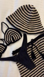 Saia Lu crochê PeB – Saia curta Confeccionada em crochê nas cores cru e preto. Ponteira em franja de crochê. Modelo veste P.