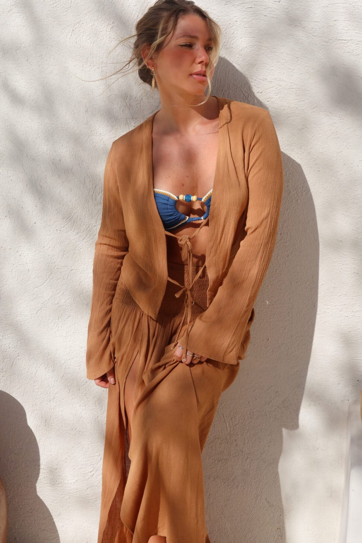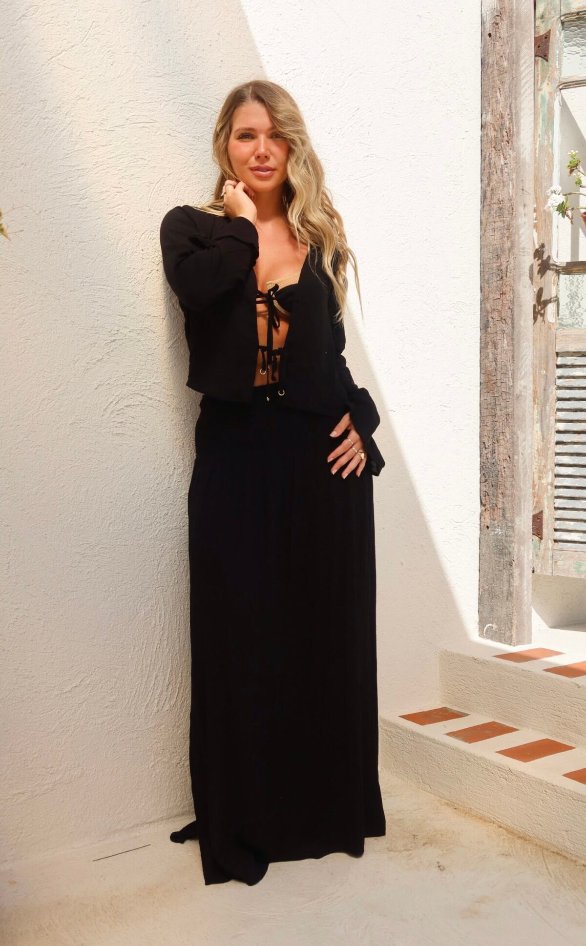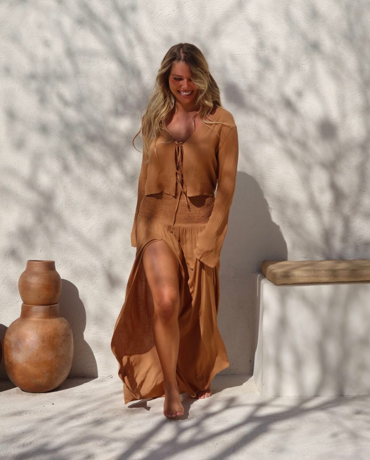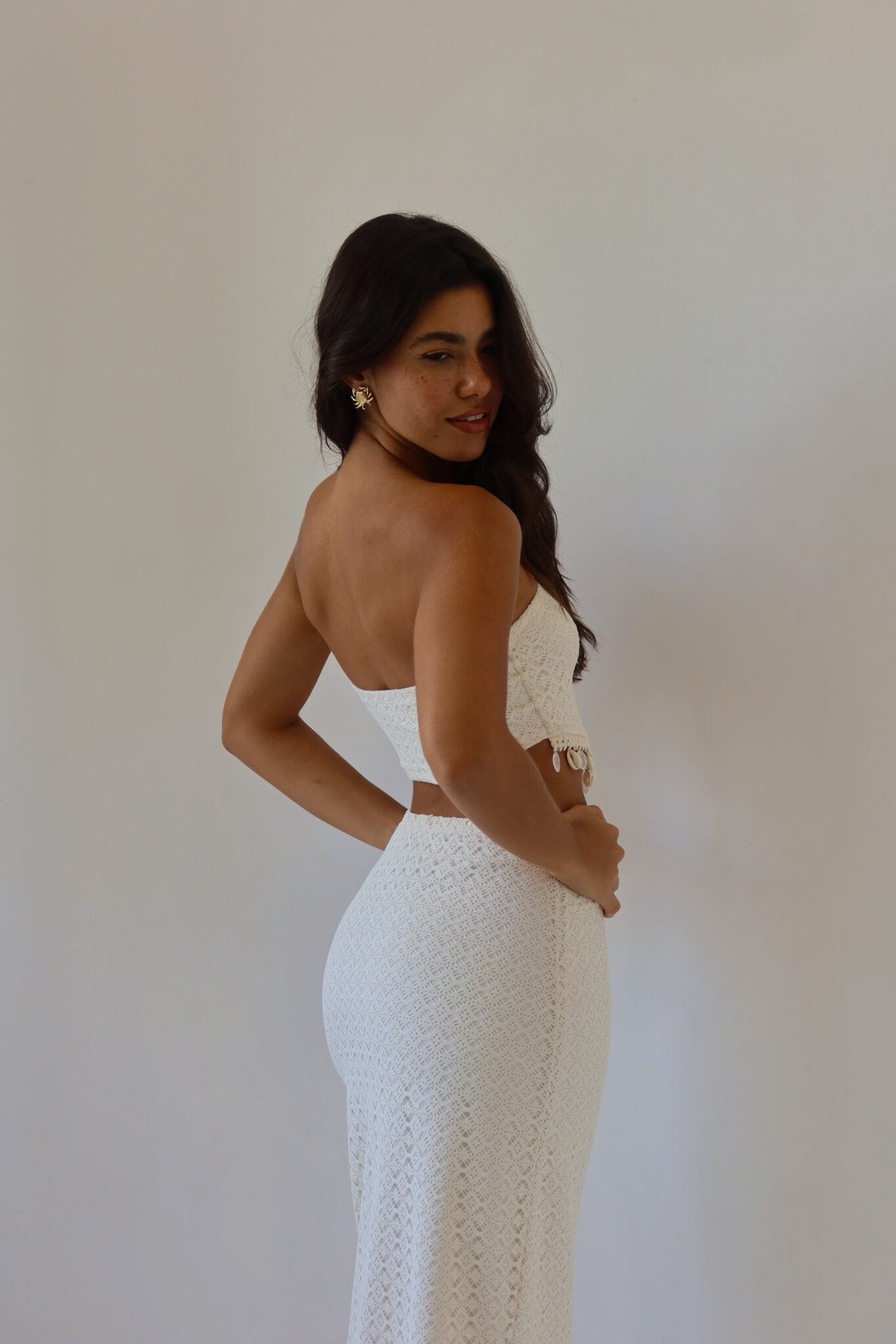 Saia longa em malha com forro, pensada para acompanhar o movimento do corpo com fluidez. O elástico na cintura proporciona ajuste perfeito e conforto ao vestir, criando uma silhueta elegante e descomplicada, ideal para composições leves e atemporais.