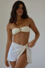 Feita Viscose de acabamento rústico sofisticado.Possui modelagem curta com amarração lateral, podendo ser usada no estilo pareô ou fechadinha, como saia tradicional. O acabamento com bordados na barra um toque sofisticado à peça, criando um visual elegante sem esforço. O tecido tem toque macio, que valoriza o caimento e eleva o acabamento. Uma peça única, feminina e marcante.