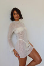 Feito em tule leve com fios de lurez dourado Conxá, ele une transparência e personalidade na medida certa.